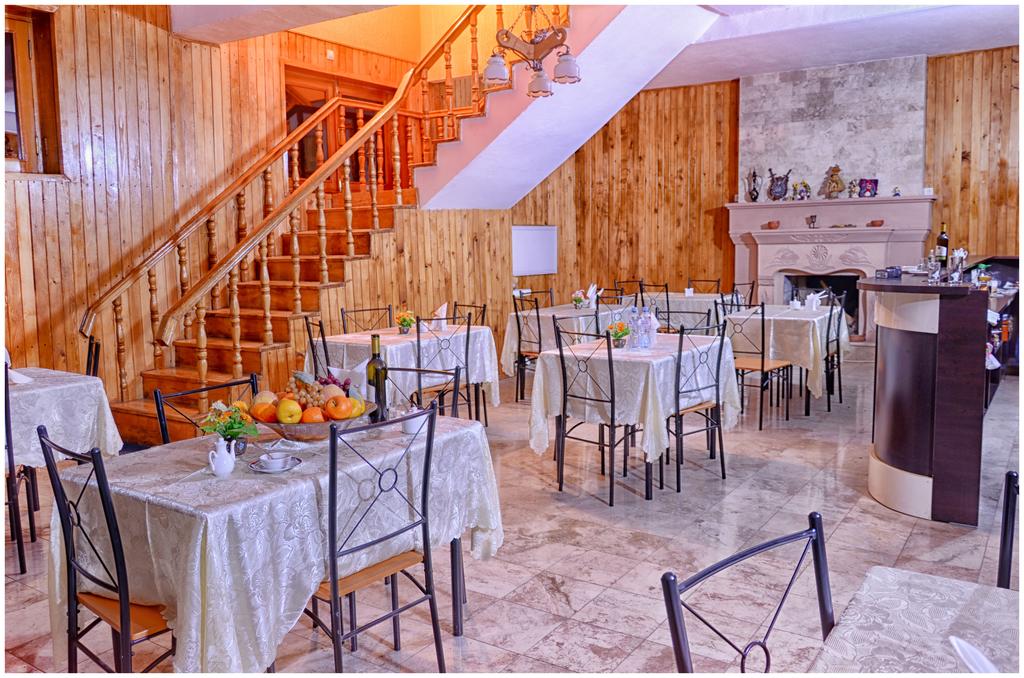 رستوران در محل غذاهای گرجستان را سرو می کند و انواع نوشیدنی ها را در این بار سرو می کند.