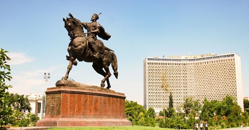 تاشکند: میدان امیر تیمور - موزه دولتی تیموریان - میدان استقلال - یادبود جنگ جهانی دوم - مجسمه مادر سوگوار - آرامگاه سرباز گمنام - بنای یاد بود لک لک ها - نمای بیرونی اداره ریاست جمهوری ازبکستان - مدرسه کوکل داش - بازار سنتی چارسو
