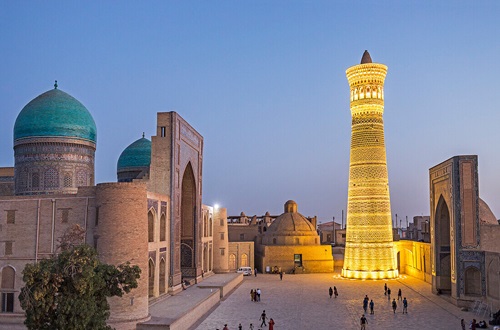 بخارا: روستای افشانه (زادگاه ابن سینا) - بنای یادبود ابوعلی سینا - موزه ابوعلی سینا - نمای بیرونی دانشکده پزشکی بهداشت عمومی ابوعلی سینا افشانه - بافت تاریخی بخارا (ثبت جهانی یونسکو): آرامگاه امير اسماعیل سامانی - موزه-آرامگاه چشمه ایوب - موزه امام البخاری - مسجد حوض آبی - مجموعه ارگ بخارا شامل: (کاخ بارعام، مسجد، موزه سکه، موزه خوشنویسی، موزه خان بخارا و موزه امیران بخارا) - نمای بیرونی مدرسه میرعرب - مسجد و مناره پای کلان - طاق زرگران - خرید چاقو و قیچی بخارایی - مدرسه الغ بیگ - مدرسه عبدالعزیز خان - طاق تلپک فروشان (بازار کلاه فروشان) - مسجد مغاک عطاری (موزه فرش) - بنای تاریخی چهار منار - مجموعه لب حوض شامل: (کارگاه-موزه عروسک، خانقاه نادر دیوان بیگی، مجسمه ملانصرالدین، مدرسه نادر دیوان بیگی، مدرسه کوکل داش و برنامه موسیقی محلی، رقص محلی و شوی لباس) - آرامگاه محمد بهاءالدین نقشبند بخاری (بنیانگذار سلسلهٔ طریقت نقشبندیه) - کاخ ستاره ماه خاصه (کاخ تابستانی امير نشين بخارا)